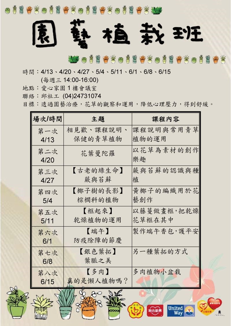 時間從4/13-6/15,(詳如下圖課程表!!!)